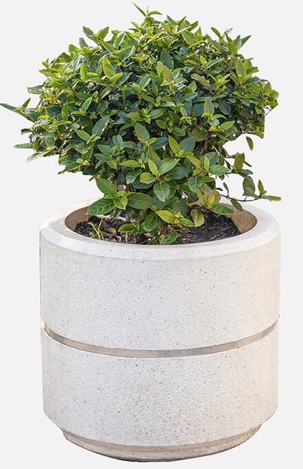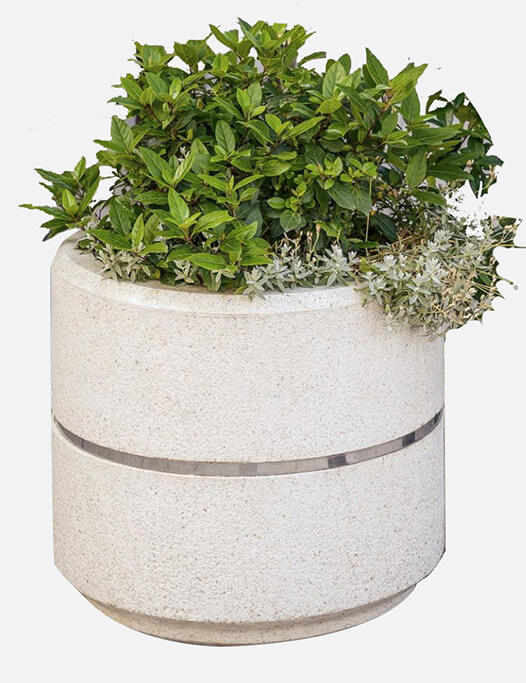 Κυκλική ζαρντινιέρα κατασκευασμένη από λευκό σκυρόδεμα ειδικής σύνθεσης αποτελούμενο από ψηφίδες μαρμάρου διαβαθμισμένης κοκκομετρίας και λευκού τσιμέντου υψηλών αντοχών, το οποίο ενισχύεται με ίνες πολυπροπυλενίου και ειδικό χαλύβδινο οπλισμό.