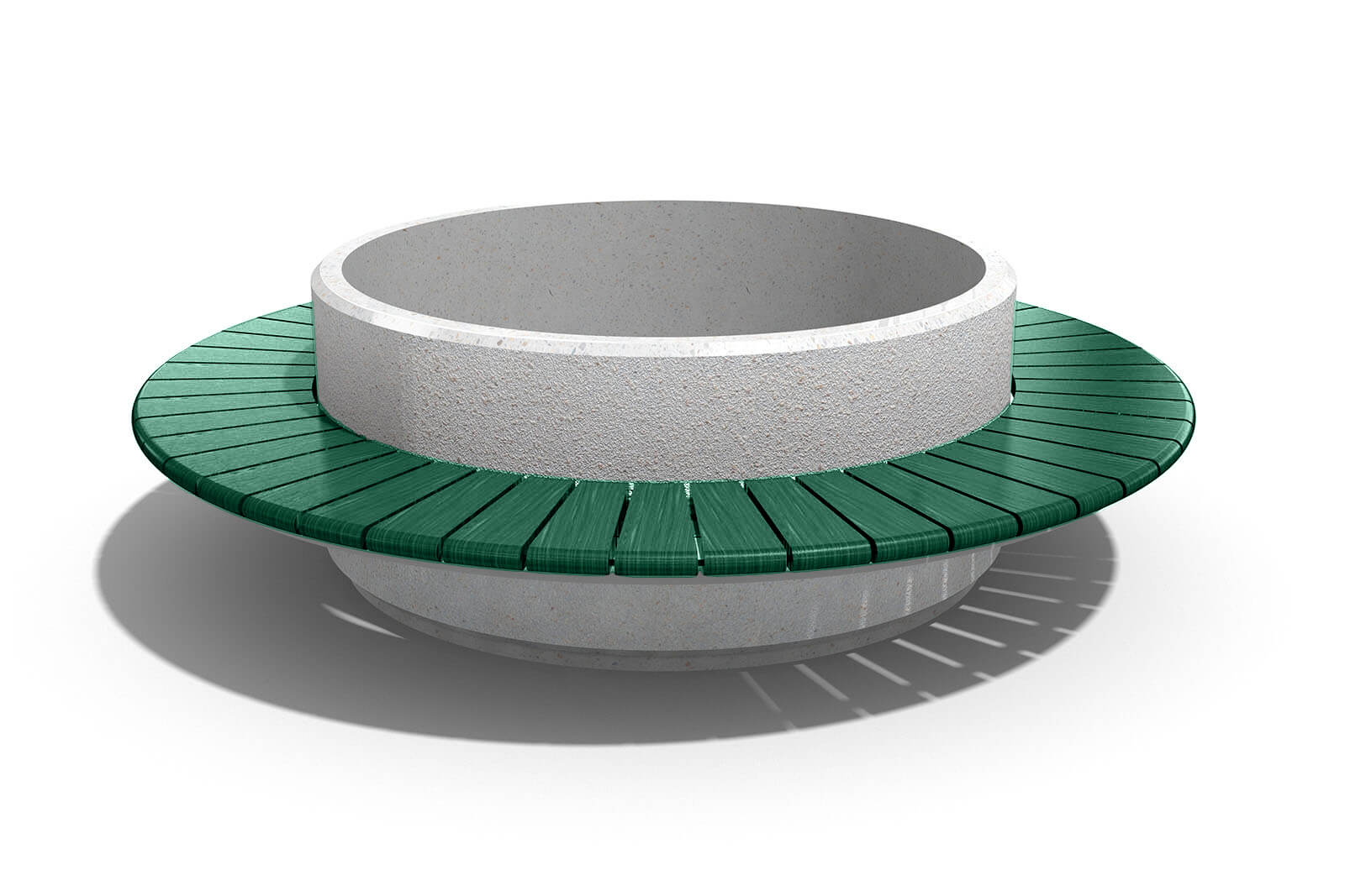 Υπαίθριο καθιστικό – κυκλική ζαντινιέρα κατασκευασμένο από λευκό σκυρόδεμα ειδικής σύνθεσης αποτελούμενο από ψηφίδες μαρμάρου διαβαθμισμένης κοκκομετρίας και λευκού τσιμέντου υψηλών αντοχών, το οποίο ενισχύεται με ίνες πολυπροπυλενίου και ειδικό χαλύβδινο οπλισμό.